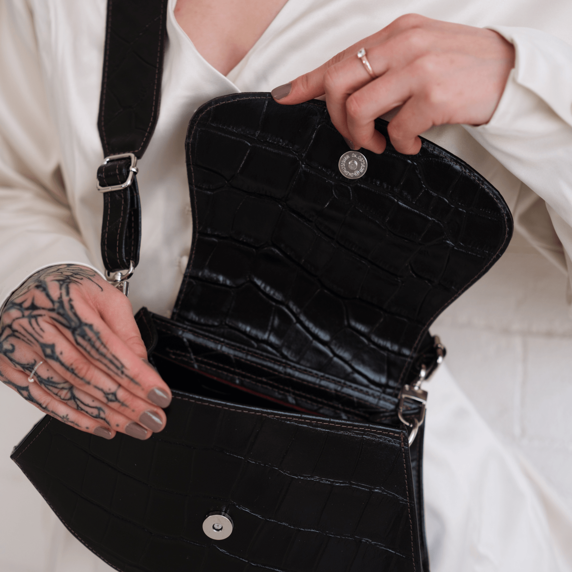 Uvnitř najdete praktické kapsičky na drobnosti, které pomohou udržet telefon, klíče i další maličkosti přehledně na svém místě. 👜