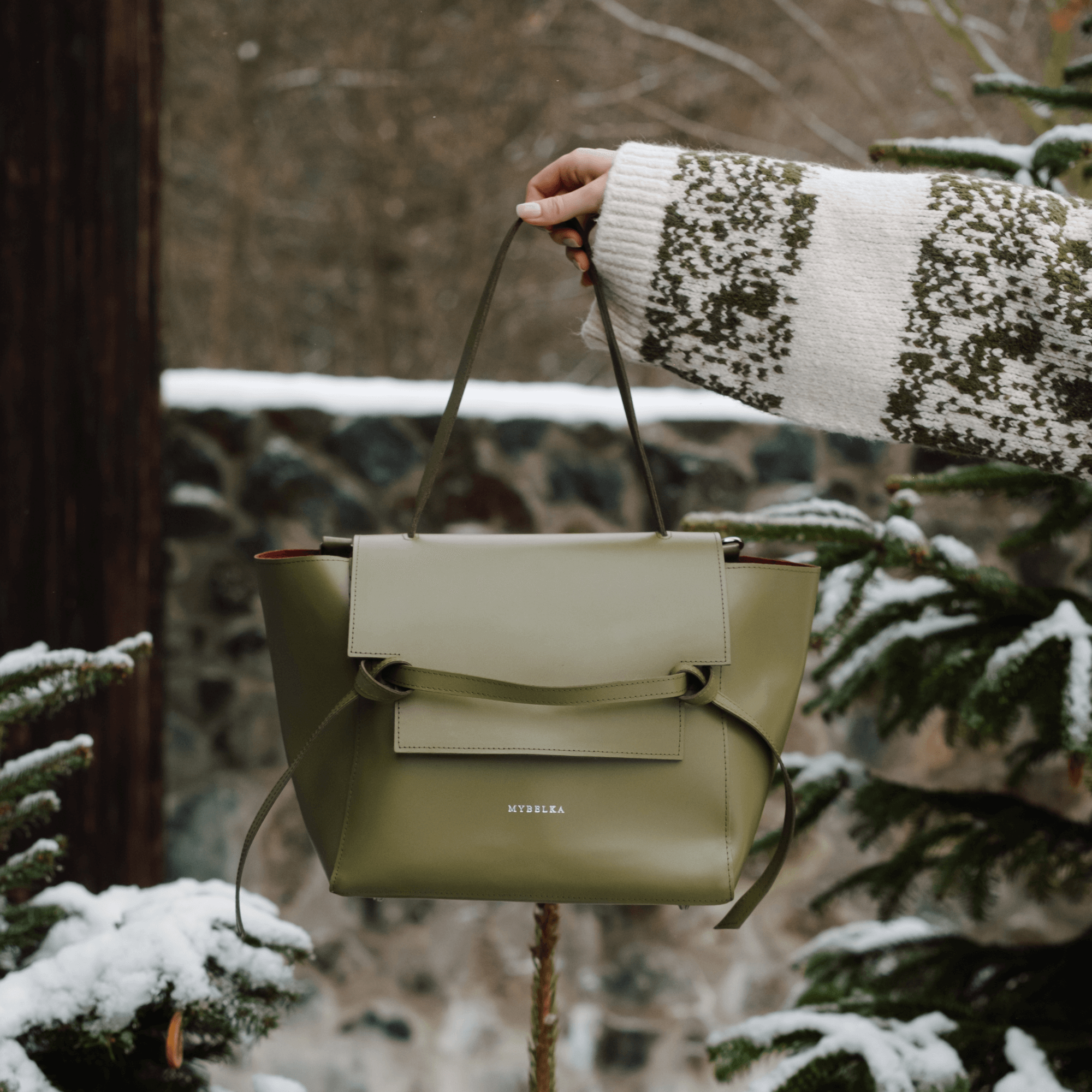 PŘEDPRODEJ – kabelku odešleme v týdnu od 19.1.2026 Kabelka Klara v kůži hladká khaki se stříbrným kováním. Na kabelce není možné provádět úpravy, jedná se o již ušitý produkt.