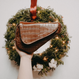 Kabelka Julia v kůži krokodýl koňak, se stříbrným kováním, šedou podšívkou a širokým páskem. Na kabelce není možné provádět úpravy, jedná se o již ušitý produkt, který je ihned k odeslání.