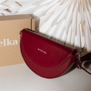Kabelka Luna v kůži hladká vínová, se stříbrným kováním, šedou podšívkou a širokým páskem. Na kabelce není možné provádět úpravy, jedná se o již ušitý produkt, který je ihned k odeslání.