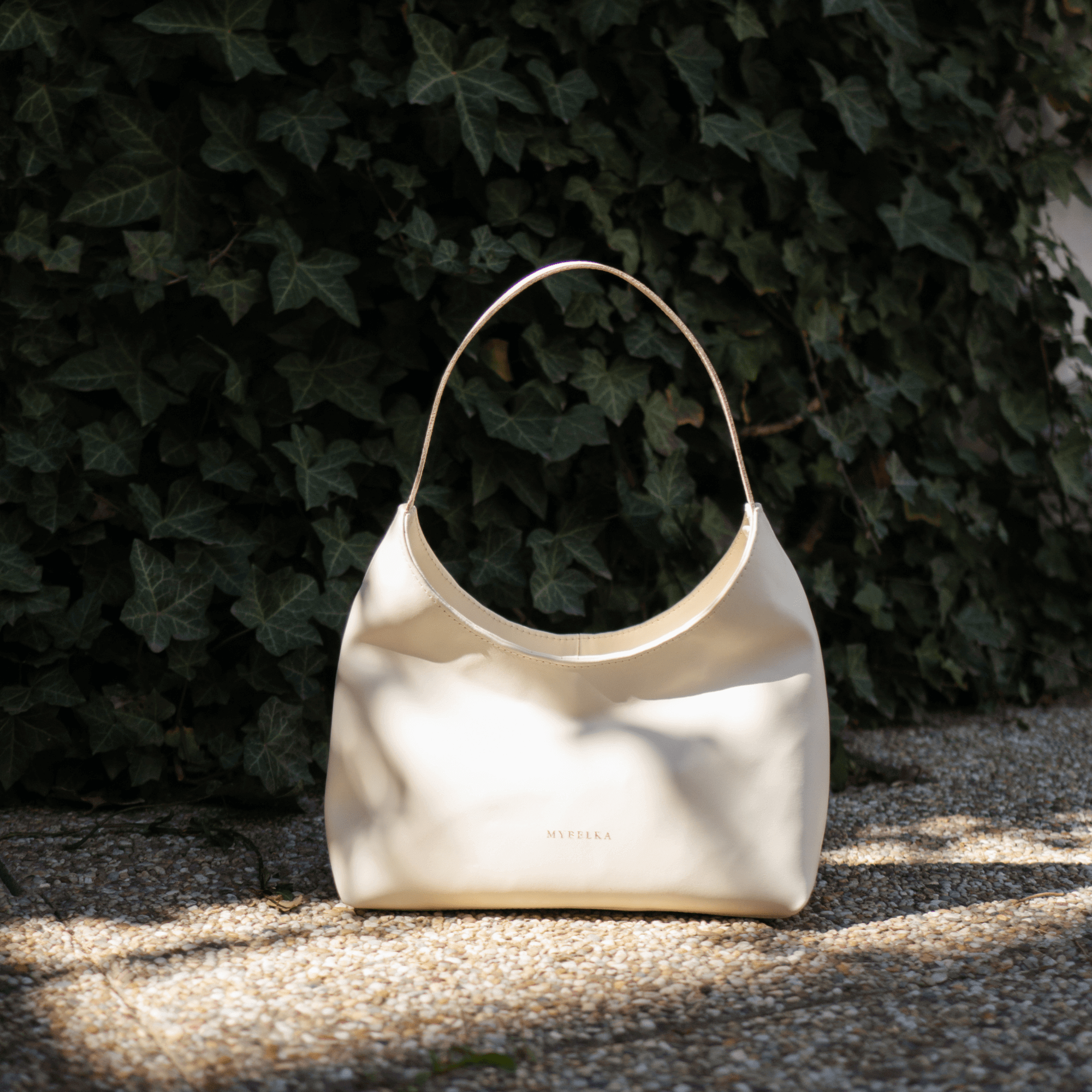 Kabelka Noemi v kůži hladká krémová, se stříbrným kováním a šedou podšívkou. Na kabelce není možné provádět úpravy, jedná se o již ušitý produkt, který je ihned k odeslání.